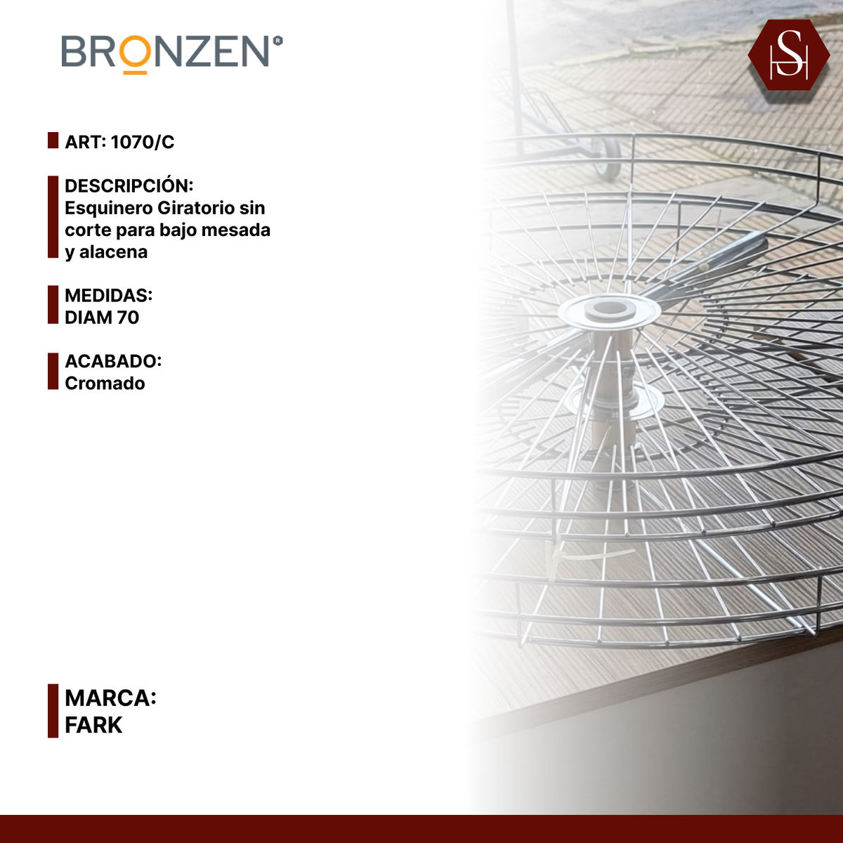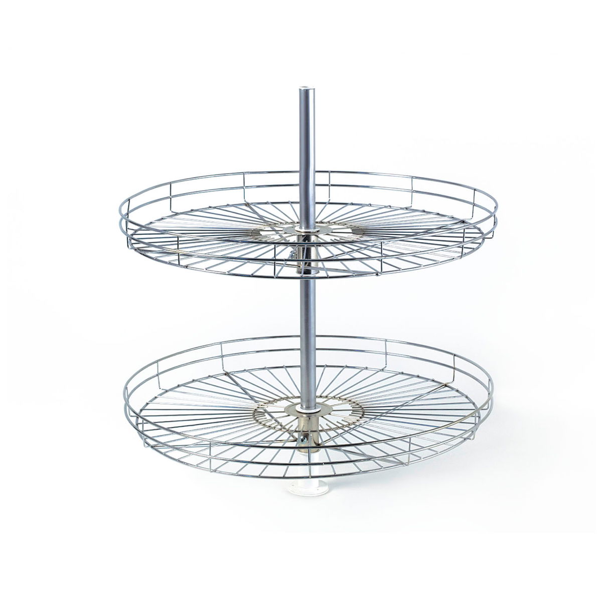 Esquinero giratorio cromado de 2 niveles, con diámetro de 700 mm, ideal para aprovechar al máximo el espacio en esquinas de bajo mesada y alacenas. Su sistema giratorio permite un acceso cómodo y total a los productos almacenados, eliminando los espacios muertos y facilitando la organización. Fabricado en acero cromado de alta resistencia, combina durabilidad, funcionalidad y un diseño elegante que se adapta a cualquier cocina.