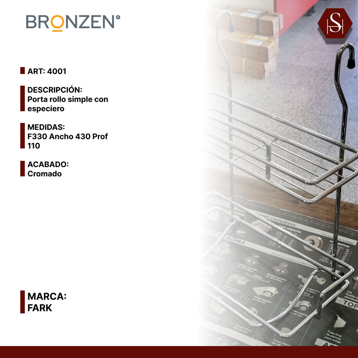 Porta rollo simple con especiero, ideal para mantener la cocina organizada y funcional. Su diseño práctico permite colgarlo fácilmente, optimizando el espacio y teniendo siempre a mano tanto el rollo de cocina como los condimentos más utilizados. Fabricado en acero con acabado cromado, combina resistencia y durabilidad con un estilo moderno y elegante.