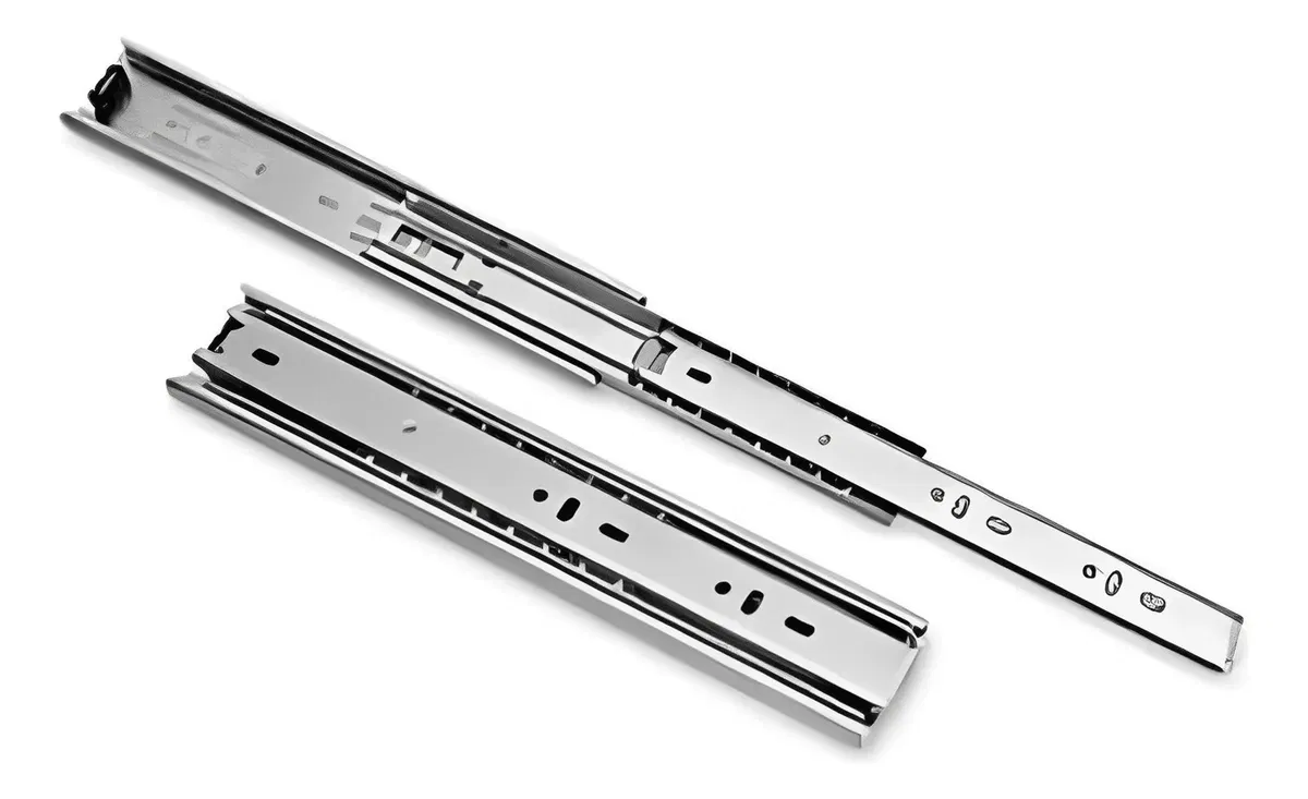 Con unas dimensiones de 45 cm de largo y 4.57 cm de ancho, es perfecta para armarios, cajoneras y espacios de almacenaje en la cocina, baño y vestidores. Su diseño telescópico permite un deslizamiento suave, soportando un peso máximo de 45 kg, ideal para el uso diario.