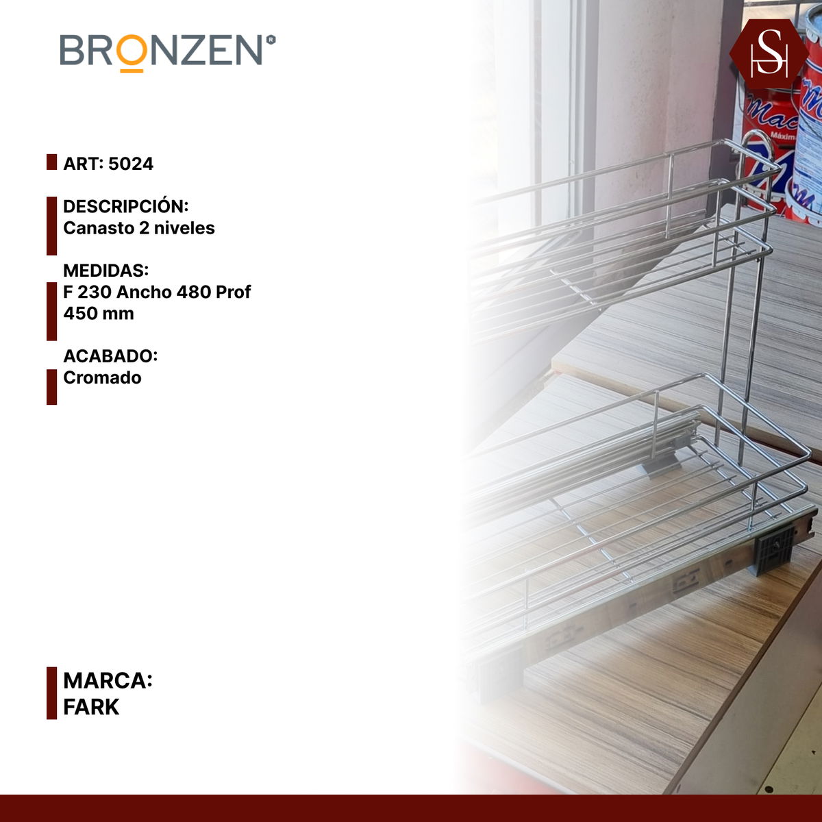 Canasto organizador de 2 niveles con correderas telescópicas, diseñado para aprovechar al máximo el espacio en muebles de cocina. Su sistema deslizante permite acceder fácilmente a los productos almacenados, garantizando orden y practicidad. Fabricado en acero cromado, ofrece resistencia, durabilidad y un acabado elegante que se adapta a cualquier estilo de cocina.