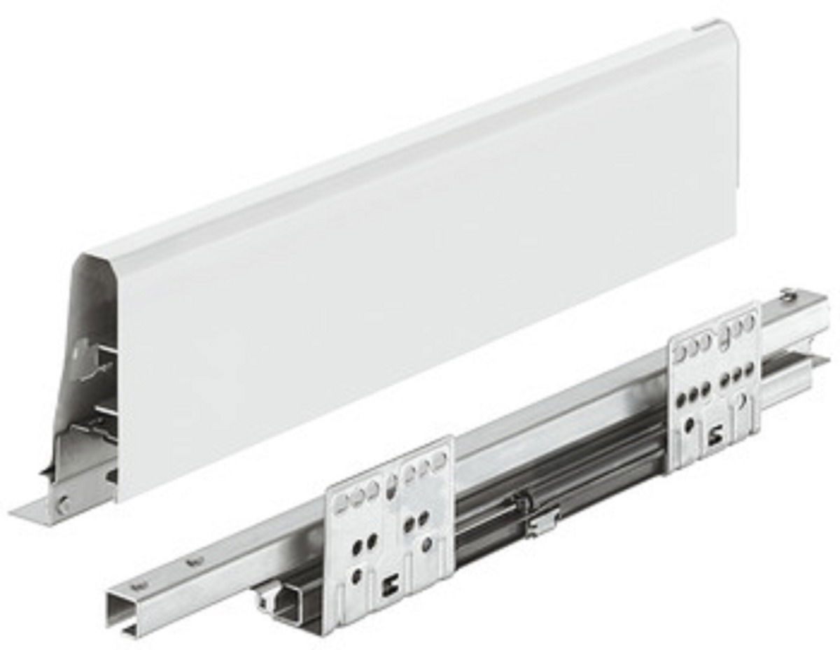La corredera lateral Häfele Matrix Box S ofrece un deslizamiento suave y silencioso, garantizando estabilidad y durabilidad en cada apertura. Diseñada para cajones de 120 mm de altura y 500 mm de profundidad, combina funcionalidad y diseño moderno en color blanco.