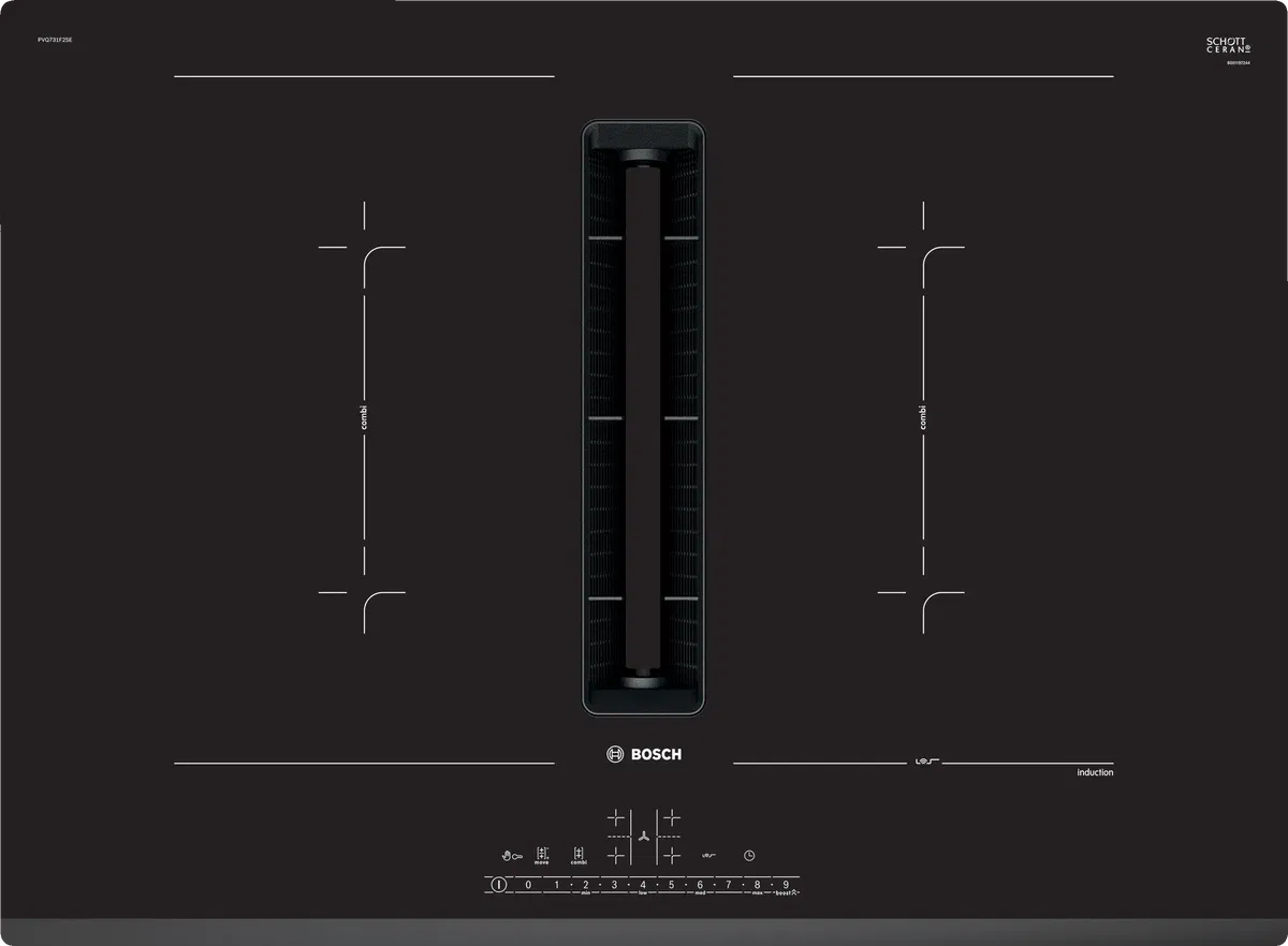 Modelo que combina una placa de inducción con un extractor integrado, ofreciendo una solución todo en uno ideal para cocinas