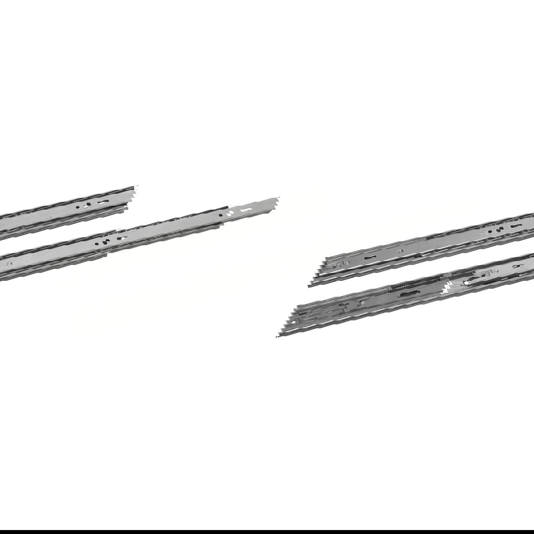 Corredera telescópica con cierre suave, ideal para cajones de uso diario. Medida 450 mm x 45 mm, fabricada en acero zincado color bronce para mayor resistencia y durabilidad.