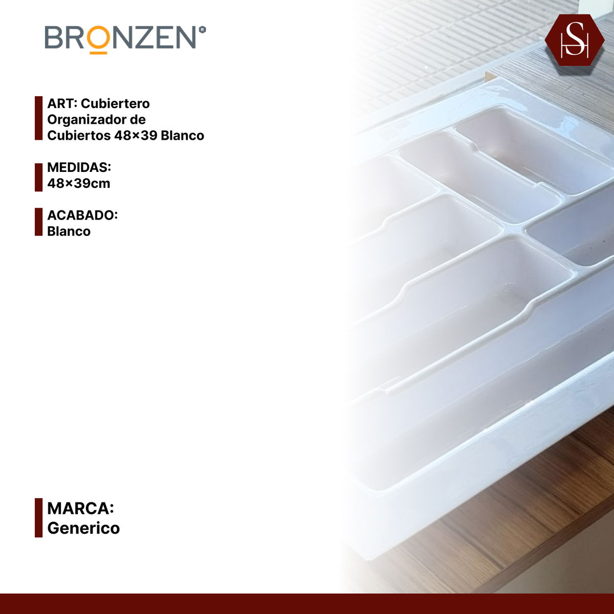El cubiertero organizador de 48×39 cm es ideal para mantener tus cubiertos siempre ordenados y al alcance. Fabricado en material resistente con acabado en color blanco, se adapta fácilmente a cajones estándar y ofrece compartimentos prácticos para separar cuchillos, tenedores, cucharas y utensilios de cocina.