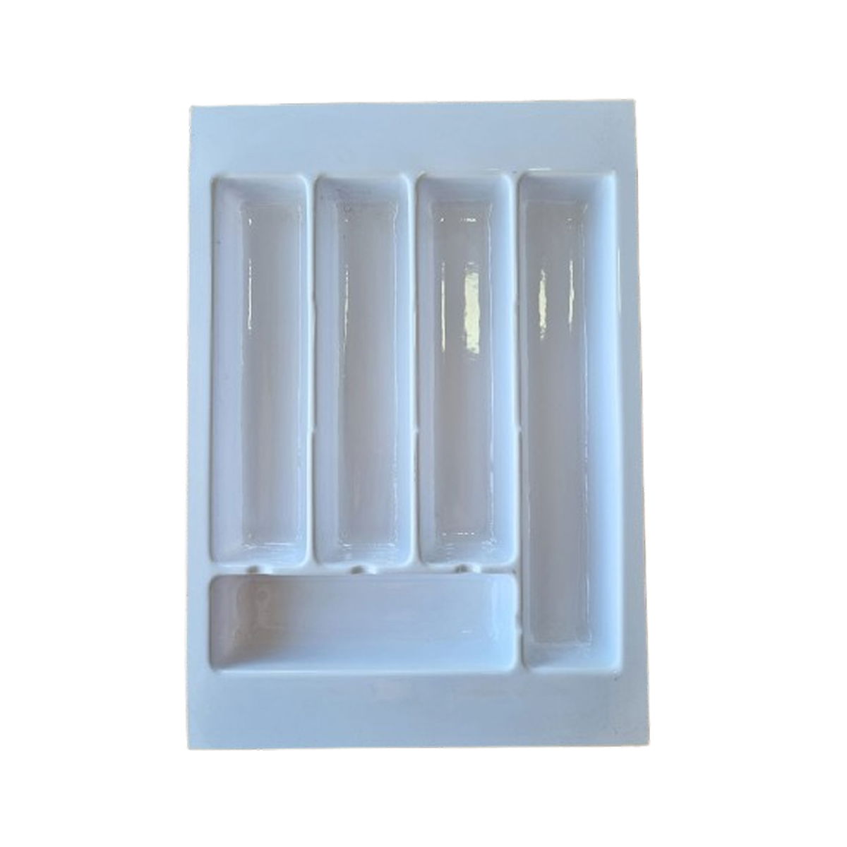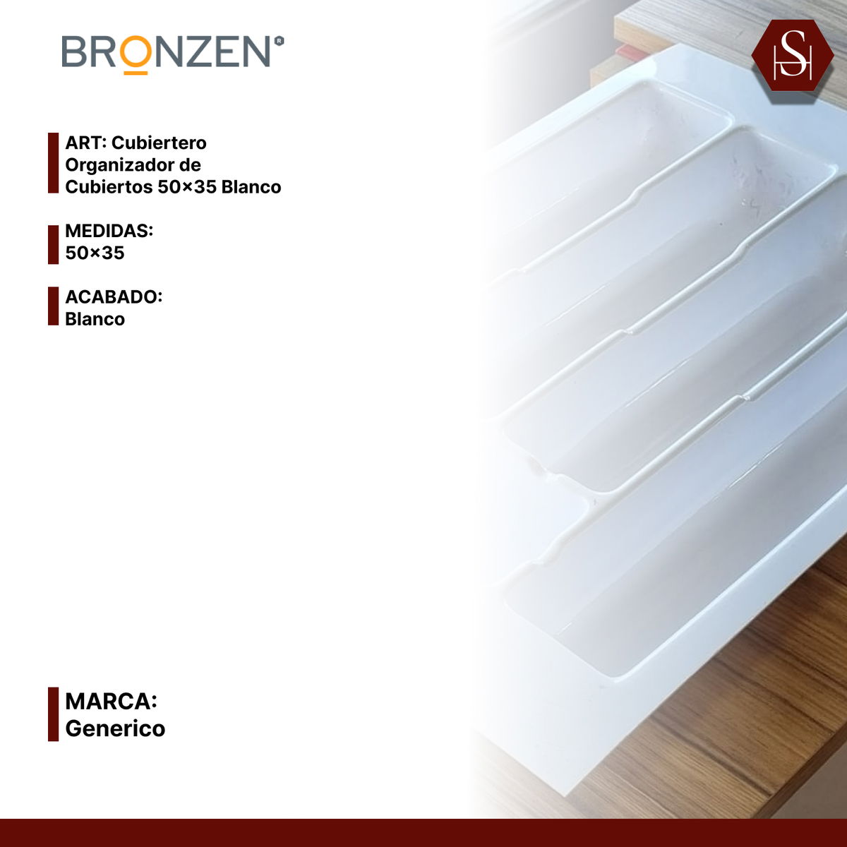 El cubiertero organizador de 50x35 cm es ideal para mantener tus cubiertos siempre ordenados y al alcance. Fabricado en material resistente con acabado en color blanco, se adapta fácilmente a cajones estándar y ofrece compartimentos prácticos para separar cuchillos, tenedores, cucharas y utensilios de cocina.