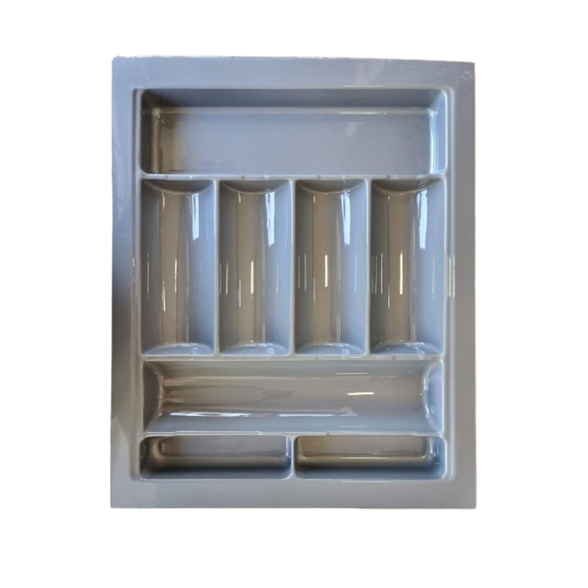 El cubiertero organizador de 61x49 cm es ideal para mantener tus cubiertos siempre ordenados y al alcance. Fabricado en material resistente con acabado en color gris, se adapta fácilmente a cajones estándar y ofrece compartimentos prácticos para separar cuchillos, tenedores, cucharas y utensilios de cocina.