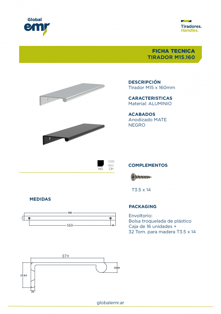 El tirador M15.160M está fabricado en aluminio anodizado mate, ofreciendo una terminación moderna, duradera y resistente a la corrosión. Su diseño recto y minimalista se adapta perfectamente a cocinas, baños y muebles contemporáneos, aportando una estética limpia y elegante.