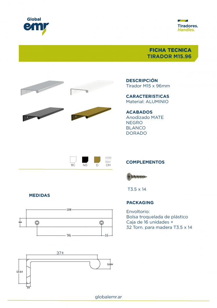 El tirador MA15.64NG está fabricado en aluminio, ofreciendo una terminación moderna, duradera y resistente a la corrosión. Su diseño recto y minimalista se adapta perfectamente a cocinas, baños y muebles contemporáneos, aportando una estética limpia y elegante.