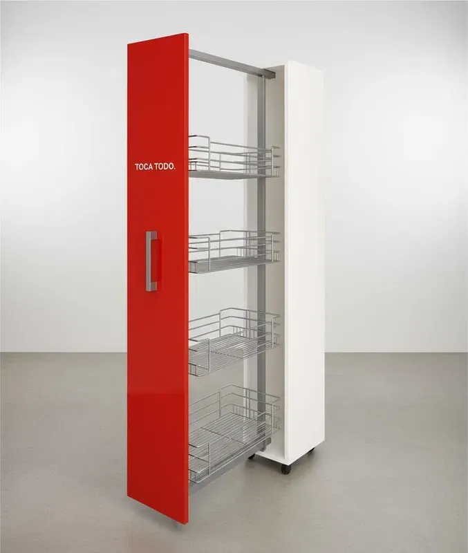 La Columna Extraíble Despensero Con Canastos Hafele Acero es la solución ideal para maximizar el espacio en tu cocina. Con un diseño funcional y elegante, esta pieza destaca por su estructura de acero cromado, que no solo proporciona durabilidad, sino que también aporta un toque moderno a cualquier ambiente. Sus 5 canastos te permiten organizar eficazmente tus alimentos y utensilios, facilitando el acceso a lo que necesitas rápidamente.