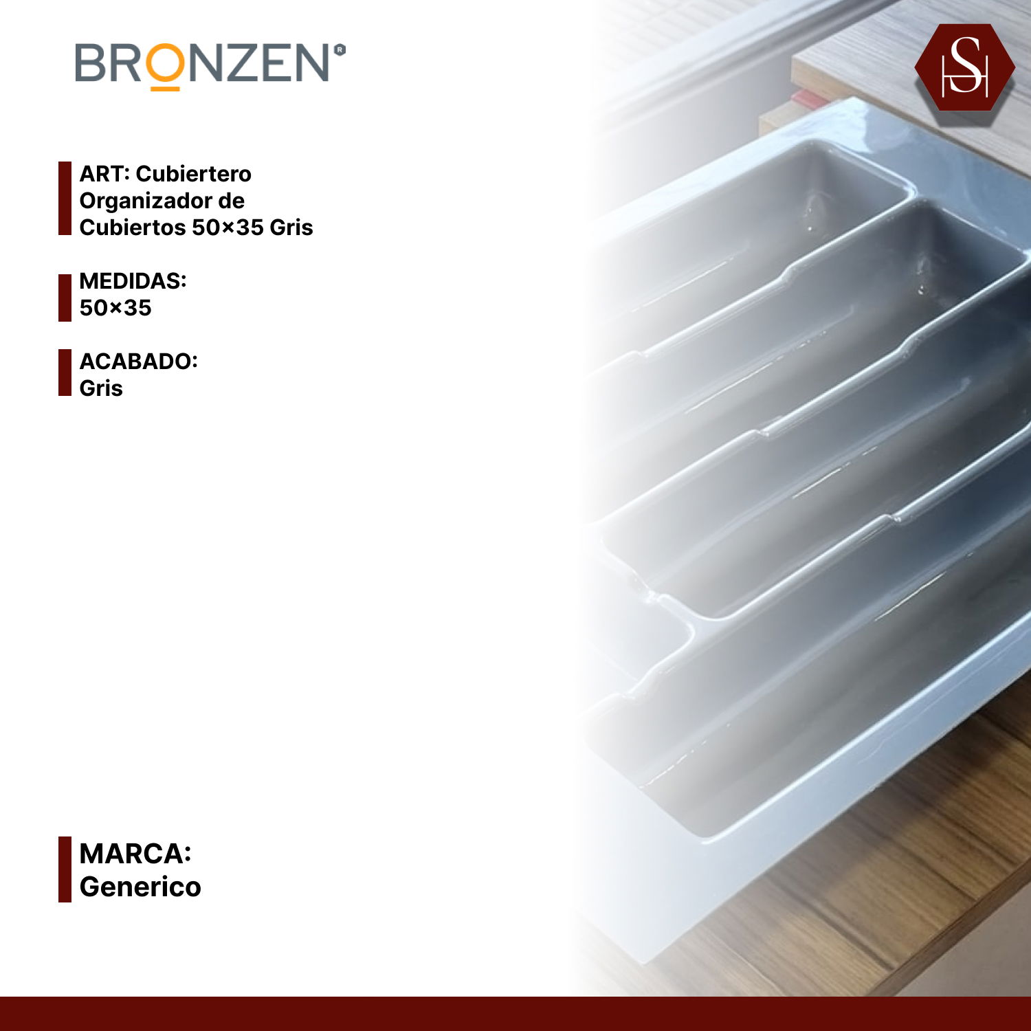 El cubiertero organizador de 50x35 cm es ideal para mantener tus cubiertos siempre ordenados y al alcance. Fabricado en material resistente con acabado en color gris, se adapta fácilmente a cajones estándar y ofrece compartimentos prácticos para separar cuchillos, tenedores, cucharas y utensilios de cocina.